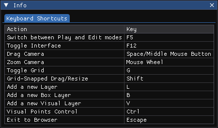 Info Window: Keyboard Shortcuts #