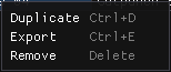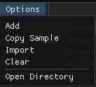 At the top of the sidebar, the Options button opens a drop-down menu with global theme actions: